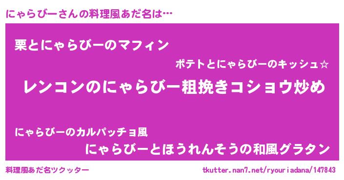 | 肩書あだ名 | 『にゃらびー閣下』『にゃらびー大将』 |