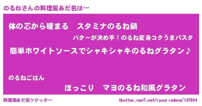 | ヘコむあだ名 | 『のるぷりん』『牛乳』『のるね(笑)』 |