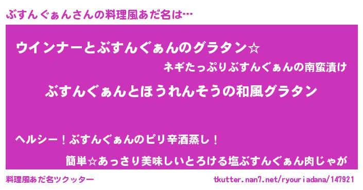 | 女子向けラノベタイトル風あだ名 | 『ぶすんぐぁんの玉の輿計画!』 |