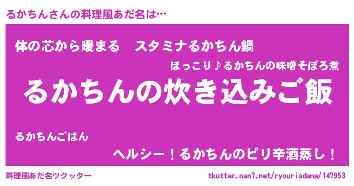| 胡散臭い通販商品みたいなあだ名 | 『運命の人と巡り会える高級そうな皿…その名も「るかちん」』 |