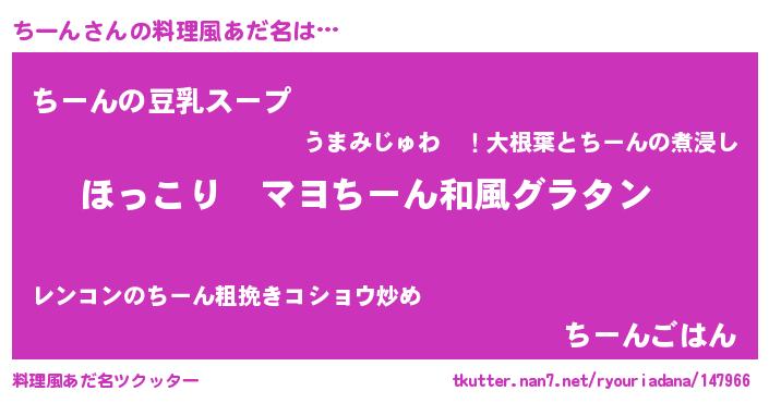 | ヘコむあだ名 | 『ちーっぺ』『つくし』『ちーん(爆)』 |