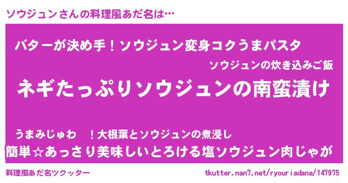 | 恥ずかしいあだ名 | 『プリティーソウジュン』『ソウちん』 |