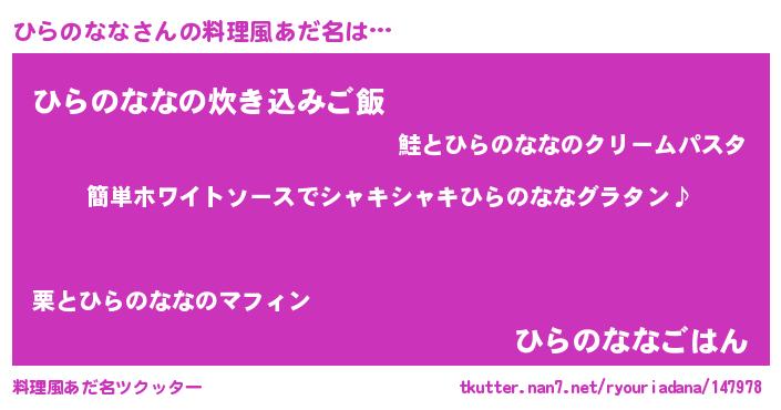 | ポケモン風あだ名 | 『ヒヒラノナナ』『メロヒッラ』 |