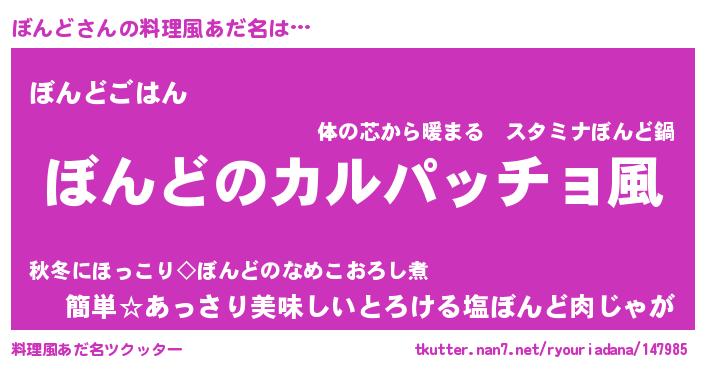 | ヘコむあだ名 | 『ぼんど(笑)』『つくし』『ぼんっ子』 |