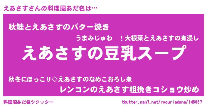 | 意味不明あだ名 | 『とにかく怪しいえあさす』 |