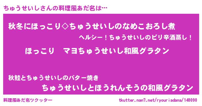 | 胡散臭い通販商品みたいなあだ名 | 『あなたにだけ特別に提供する限定10本のレアな日本酒…その名も「ちゅうせいし」』 |