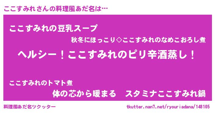 | 胡散臭い通販商品みたいなあだ名 | 『芸能人もオススメするアガリクス…その名も「ここすみれ」』 |