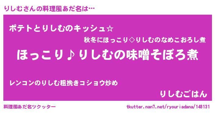 | 男性向けラノベタイトル風あだ名 | 『りしむの憂鬱』『魔法科高校のりしむ』 |