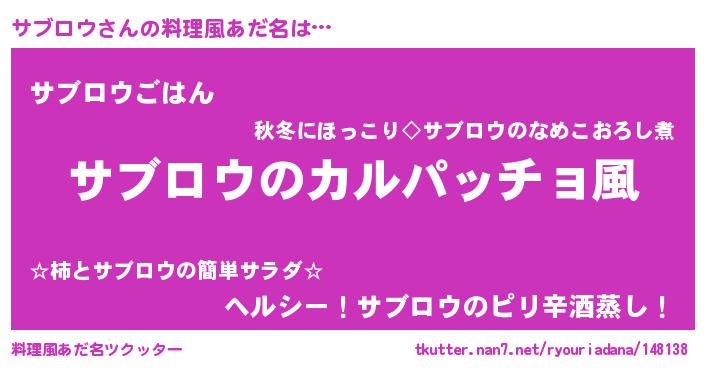 | 意味不明あだ名 | 『住所不定無職サブロウ(71歳)』 |