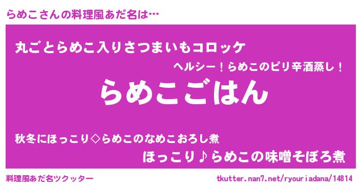| 男性向けラノベタイトル風あだ名 | 『ラメコスレイヤー』『らめこの憂鬱』 |
