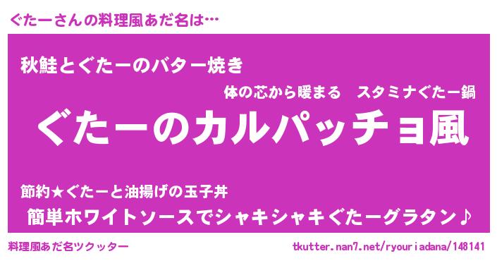 | 男性向けラノベタイトル風あだ名 | 『魔弾の王とぐたー』『ぐたーの憂鬱』 |