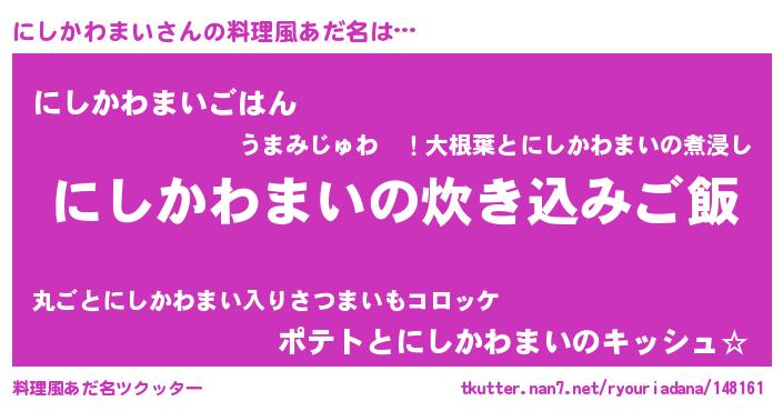 | 胡散臭い通販商品みたいなあだ名 | 『全米が絶賛したサプリメント…その名も「にしかわまい」』 |