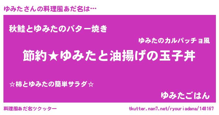 | ファンタジー風あだ名 | 『ユミフェル』『ユミディッシュ』 |