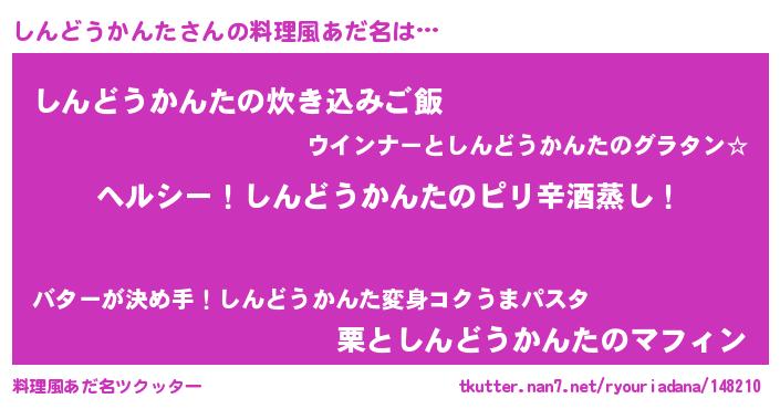 | 男性向けラノベタイトル風あだ名 | 『Re:しんどうかんたから始める異世界生活』 |