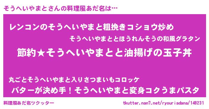 | ヘコむあだ名 | 『そうにー』『そうっ子』『なまこ酢』 |