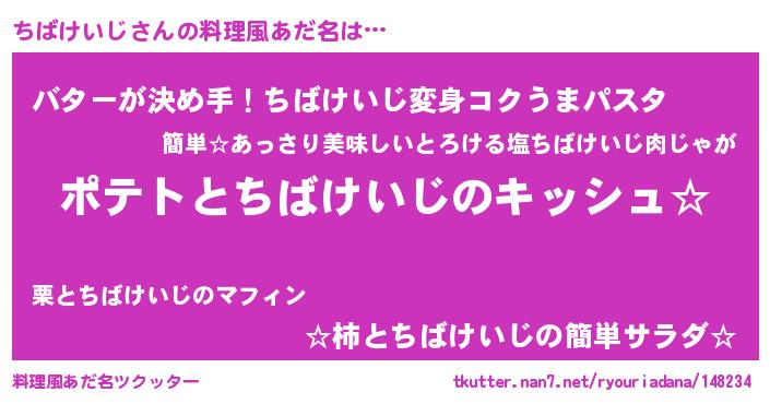 | 女子向けラノベタイトル風あだ名 | 『ちばけいじの卵を拾いまして』 |