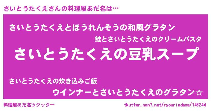 | 女子向けラノベタイトル風あだ名 | 『さいとうたくえは平凡を望む』 |
