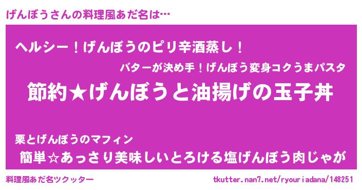 | 意味不明あだ名 | 『ペロリンげんぼう』『自称げんぼう』 |