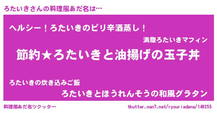 | 意味不明あだ名 | 『ペロリンろたいき』『自称ろたいき』 |