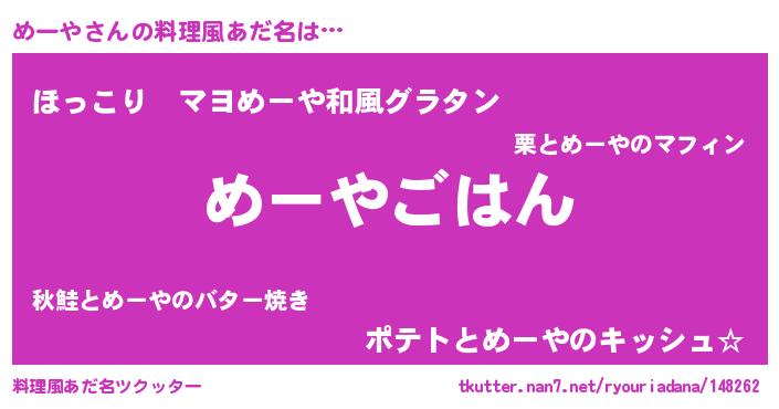 | ヘコむあだ名 | 『めー太郎』『めーや(遠い目)』 |