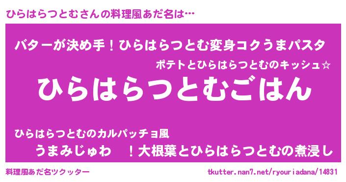 | 男性向けラノベタイトル風あだ名 | 『ヒラハラツトムスレイヤー』 |