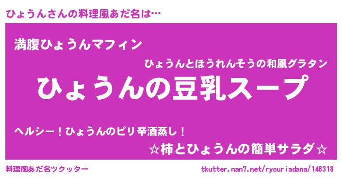 | 胡散臭い通販商品みたいなあだ名 | 『信頼と実績のサプリメント…その名も「ひょうん」』 |