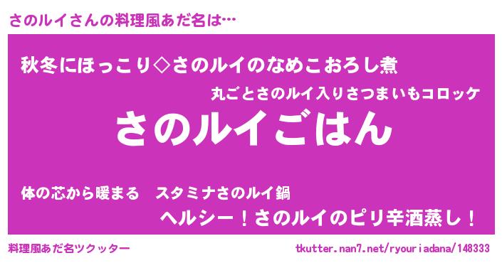 | 男性向けラノベタイトル風あだ名 | 『サノルイスレイヤー』 |