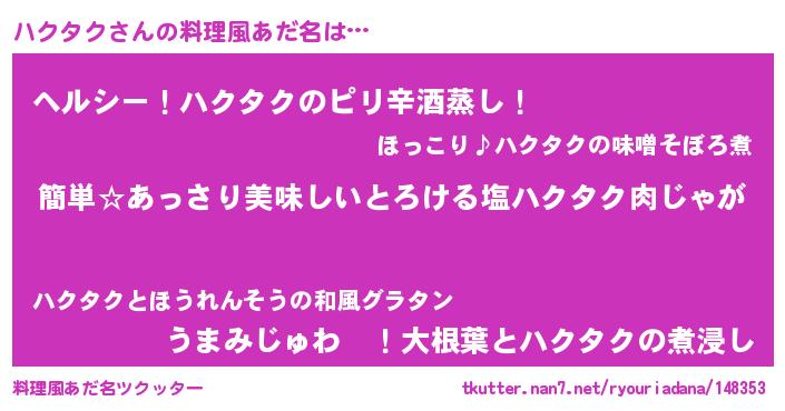 | ファンタジー風あだ名 | 『ハクディッシュ』『ゼハクトゥ』 |