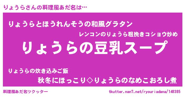 | 女子向けラノベタイトル風あだ名 | 『りょうらは平凡を望む』 |