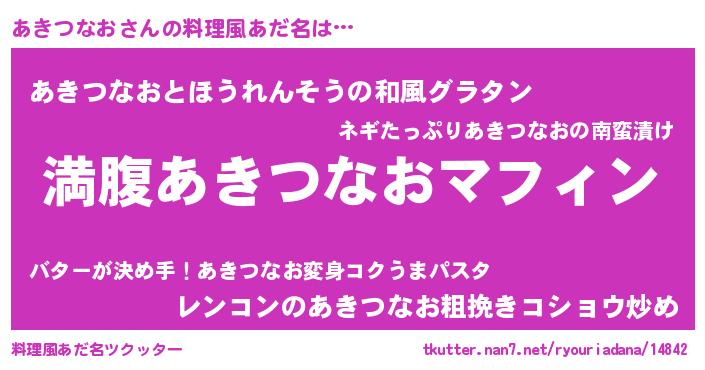 | 胡散臭い通販商品みたいなあだ名 | 『絶対に幸福をもたらす健康食品…その名も「あきつなお」』 |