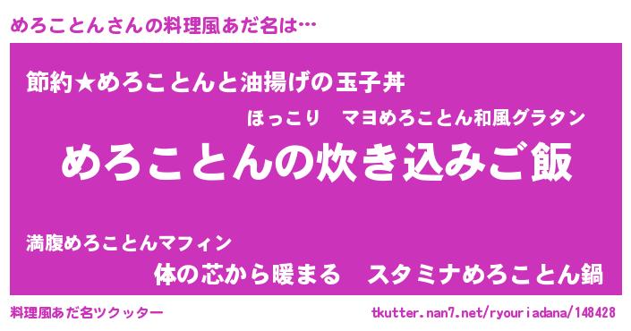 | ヘコむあだ名 | 『めろにゅー』『なまこ酢』『めろお』 |