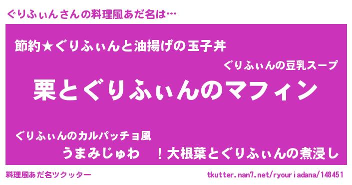 | 男性向けラノベタイトル風あだ名 | 『はたらくぐりふぃんさま!』 |