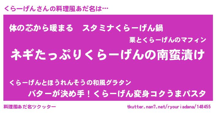 | ヘコむあだ名 | 『くらにー』『なまこ酢』『くらっ子』 |