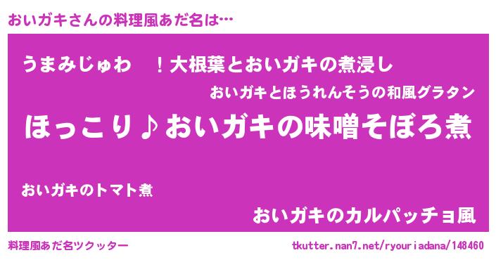 | ヒーロー風カッコイイあだ名 | 『スーパーオイガキ』『仮面オイダー』 |
