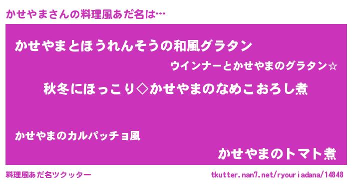 | ヒーロー風カッコイイあだ名 | 『慈愛の使者かせやま』『仮面カセダー』 |