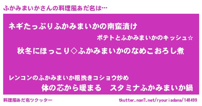 | 男性向けラノベタイトル風あだ名 | 『ふかみまいかに滅ぼされるだけの簡単なお仕事です』 |