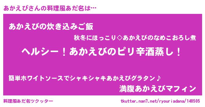 | 意味不明あだ名 | 『自称あかえび』『永久保存あかえび』 |
