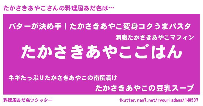 | ヘコむあだ名 | 『たかお』『たかさきあやこ(小並感)』 |