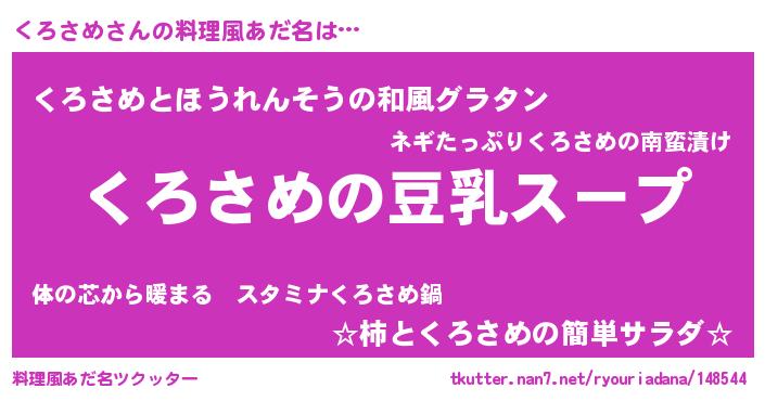 | 男性向けラノベタイトル風あだ名 | 『ダンジョンにくろさめを求めるのは間違っているだろうか』 |