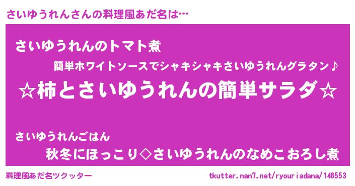 | ヘコむあだ名 | 『さいっぺ』『さいもー』『酢こんぶ』 |