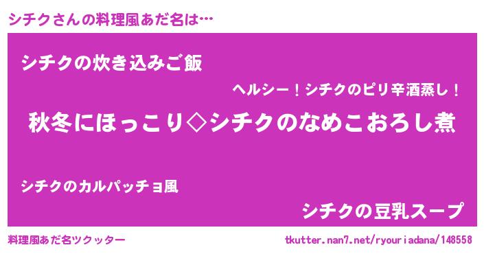 | ヘコむあだ名 | 『シチを』『シチク(笑)』『シチもー』 |