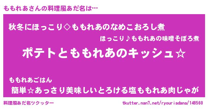 | ヘコむあだ名 | 『ももお』『ももれあ(笑)』 |