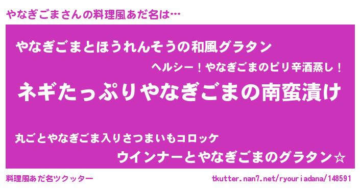 | 意味不明あだ名 | 『ペロリンやなぎごま』『自称やなぎごま』 |