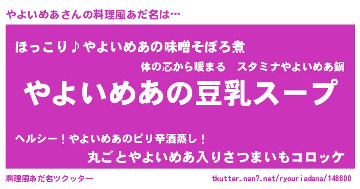 | 意味不明あだ名 | 『とにかく怪しいやよいめあ』 |