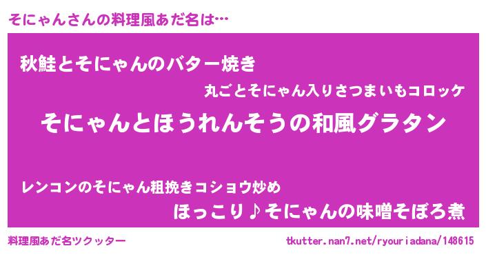 | 意味不明あだ名 | 『もやし科そにゃん属』『自称そにゃん』 |