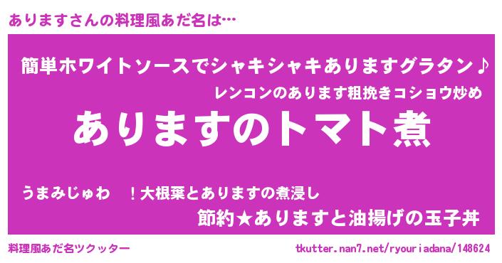 | ピコ太郎風あだ名 | 『アア太郎』『アリ八郎』『アコ二郎』 |