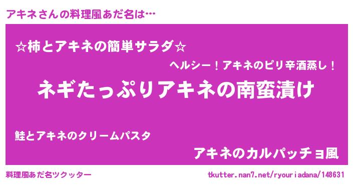 | 意味不明あだ名 | 『ペロリンアキネ』『自称アキネ』 |