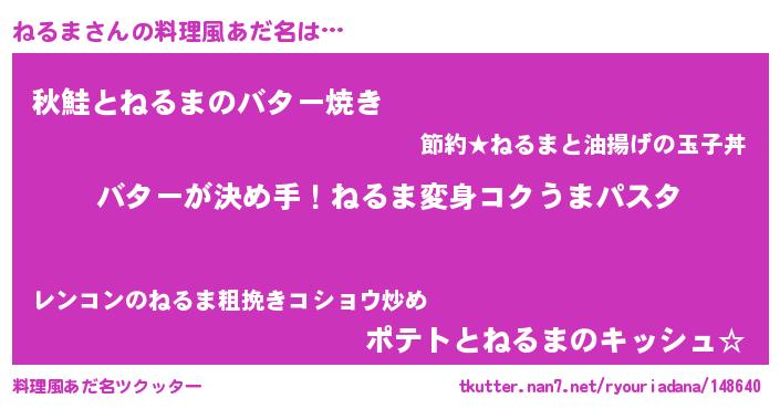 | 女子向けラノベタイトル風あだ名 | 『ねるま恋絵巻』『ねるまの契約王妃』 |