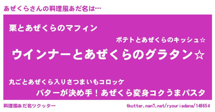 | ヘコむあだ名 | 『なまこ酢』『あぜを』『あぜにー』 |