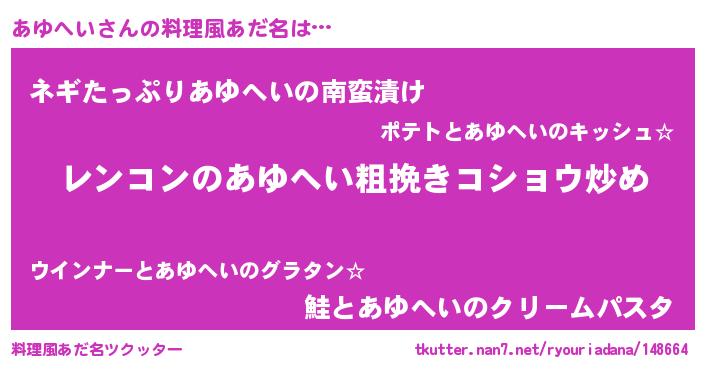 | ヘコむあだ名 | 『あゆっふぃ~』『あゆっぺ』 |